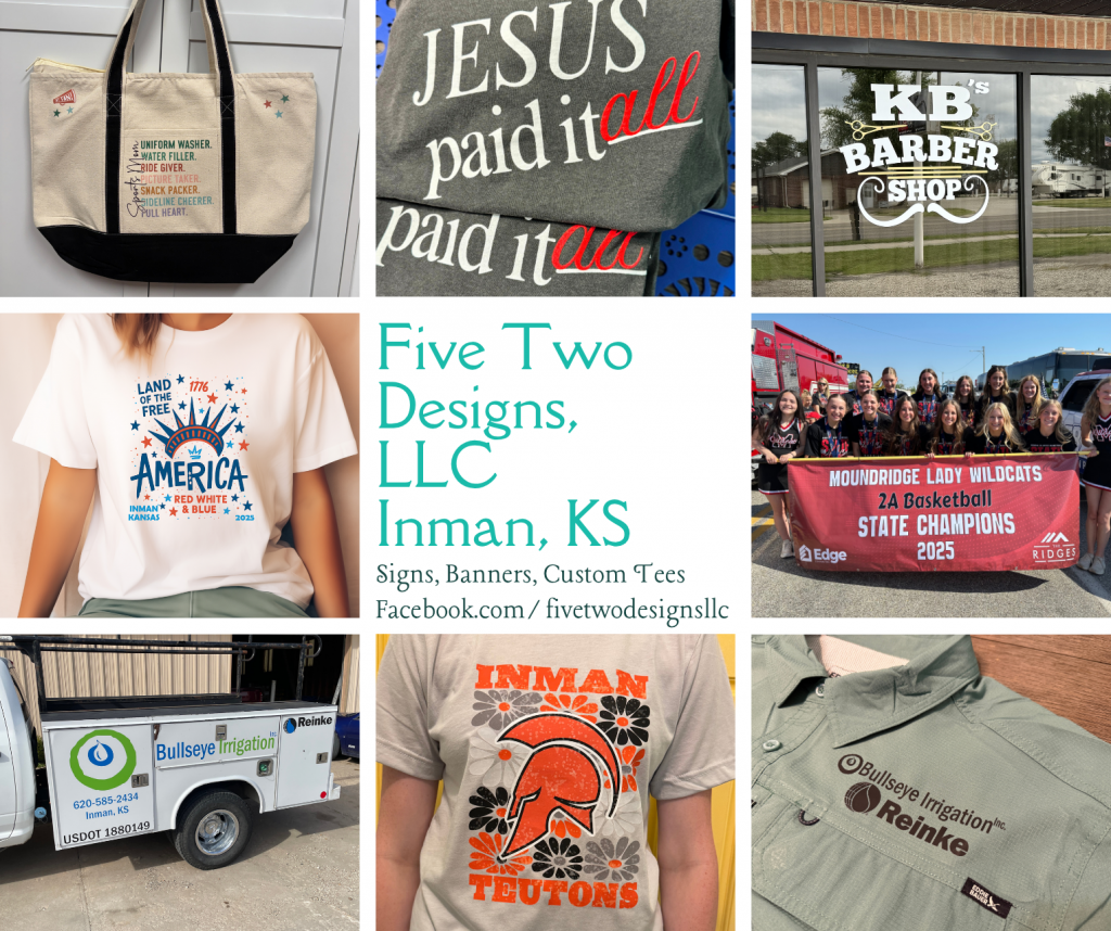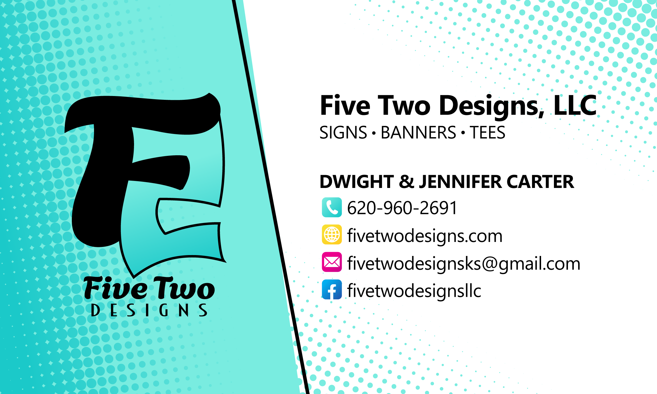 Welcome to Five Two Designs LLC. If you need a shirt for your sports team or a new sign for your business window, we are here to serve you!
